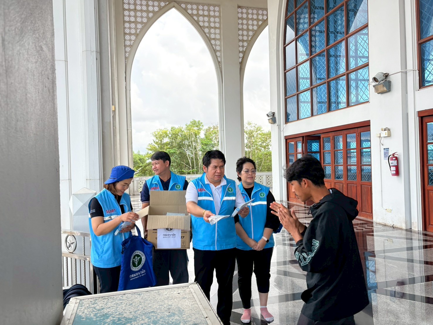 วันที่ 12 ธันวาคม 2568 ทีม SEhRT ศูนย์อนามัยที่ 12 ยะลา ร่วมกับ ทีม SEhRT ศูนย์อนามัยที่ 2 พิษณุโลก ศูนย์อนามัยที่ 4 สระบุรีศูนย์อนามัยที่ 11 นครศรีธรรมราช ลงพื้นที่ฟื้นฟู เฝ้าระวังด้านอนามัยสิ่งแวดล้อม ณ มัสยิดกลางประจำจังหวัดสงขลา อำเภอหาดใหญ่ จังหวัดสงขลา ทั้งนี้ ทีม SEhRT ได้ให้คำแนะนำการดูแลสุขอนามัย พร้อมทั้งมอบสิ่งสนับสนุนและของใช้จำเป็น เช่น หน้ากากอนามัย ยาน้ำกัดเท้า ยานวดแก้ปวดเมื่อย ยาป้องกันโรคฉี่หนู เพื่อป้องกันปัญหาสาธารณสุขหลังน้ำลด
