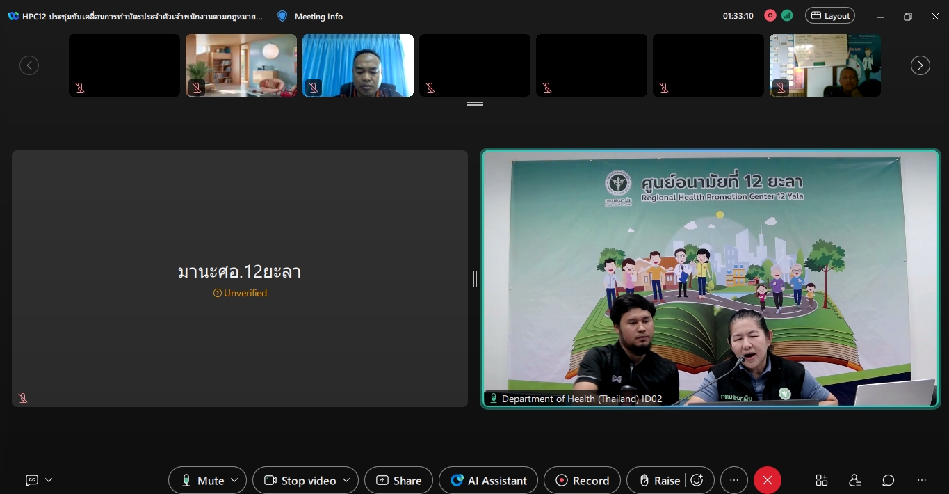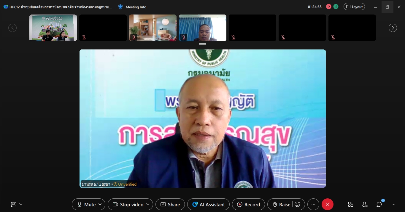 เขตสุขภาพที่ 12 ผ่านระบบการประชุมออนไลน์ โปรแกรม Webex meeting โดยมีกลุ่มเป้าหมายที่เข้าร่วมคือ เจ้าหน้าที่ในสังกัดสำนักปลัดกระทรวงสาธารณสุข ได้แก่ สำนักงานสาธารณสุขจังหวัด สำนักงานสาธารณสุขอำเภอ โรงพยาบาล และเจ้าหน้าที่ในสังกัดองค์กรปกครองส่วนท้องถิ่น ได้แก่ องค์การบบริหารส่วนจังหวัด เทศบาล องค์การบริหารส่วนตำบล และ โรงพยาบาลส่งเสริมสุขภาพตำบล ในเขตพื้นที่สุขภาพที่ 12 ซึ่งในวาระการประชุมได้ชี้แจงเกี่ยวกับความสำคัญ และขั้นตอนการจัดทำบัตรประจำตัวเจ้าพนักงานตามกฎหมายว่าด้วยการสาธารณสุข เพื่อให้ทางเจ้าหน้าที่ที่เข้าร่วมประชุมสามารถนำไปปฏิบัติต่อไป